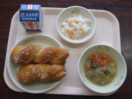 今日のメニュー 揚げパン ポトフ ヨーグルトサラダ 牛乳
