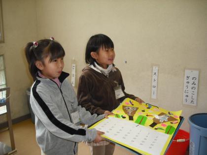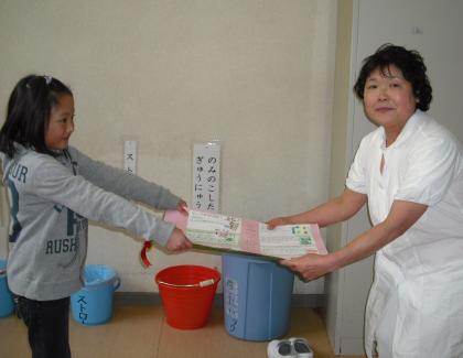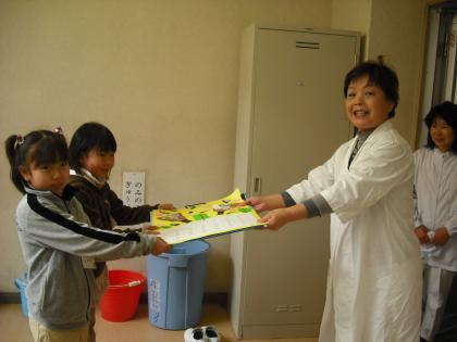 2・3年生が寄せ書きを調理師さんたちに渡しています。感謝の気持ちをこめて渡しています。