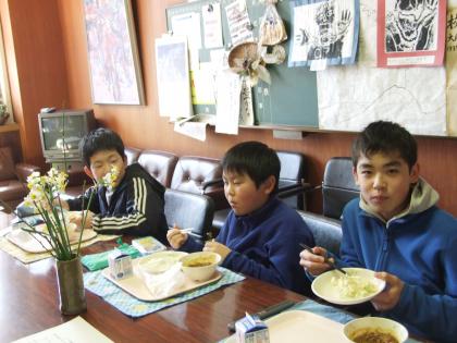 校長先生と会食する6年生です。