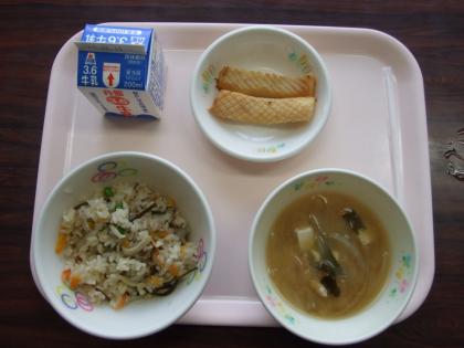 今日のメニュー クープジューシー いかの生姜焼き 豆腐と玉ねぎの味噌汁 牛乳