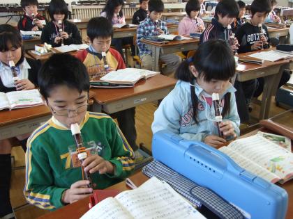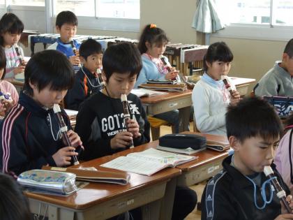 リコーダーの練習をしています。