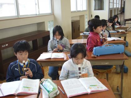 リコーダーの練習をしています。