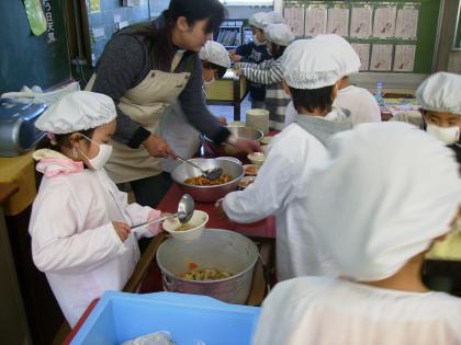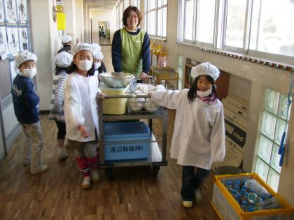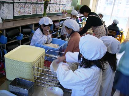 1年生も給食の支度が上手になりました。給食当番は進んで働いています。
