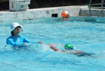 水泳教室では、泳ぎが苦手な子どもたちの希望者が参加しています。