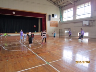 今回みなみっこ宝箱は、雨のため体育館のみの開放でした。PTA理事とのドッチボール対決で楽しく盛り上がりました。