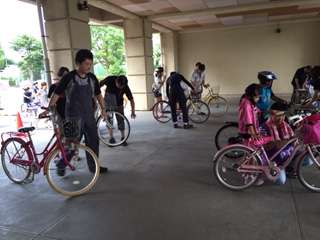 7月12日に3年生以上の児童を対象に自転車点検を行いました。ほとんどの児童は点検OKで合格シールを貼ることが出来ましたが、タイヤの空気が少ない自転車が多くみられました。マメにタイヤの空気圧のチエックをお願いします。また今年もご協力していただいた自転車屋さんありがとうございましたm(_ _)m