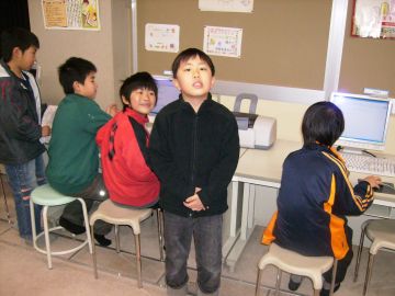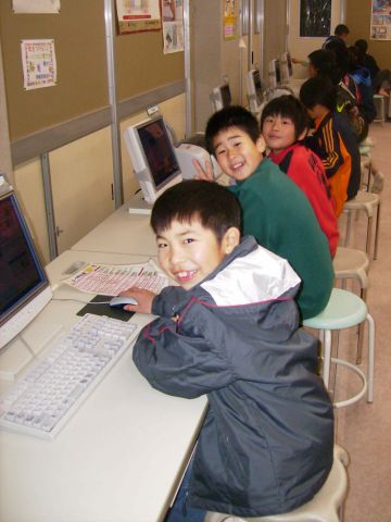 雨の日の休み時間、パソコン室をのぞいてみると、たくさんの子どもたちがいました。