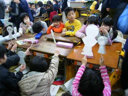 5年生が、ペープサートや紙芝居で環境問題を丁寧に説明してくれました。合い言葉を言ったり、リサイクルの実践をしたりして、1年生もエコについて勉強することができました。