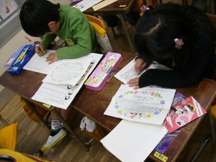 生まれる前後の家族の思いや願いを聞いてきて発表し合った後、おうちの人からのお手紙を読みました。家族の愛情や命の大切さで心がいっぱいになった1時間でした。