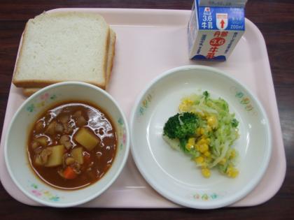 今日のメニュー グラーシュ ブロッコリーのサラダ グラーシュ 牛乳 食パン