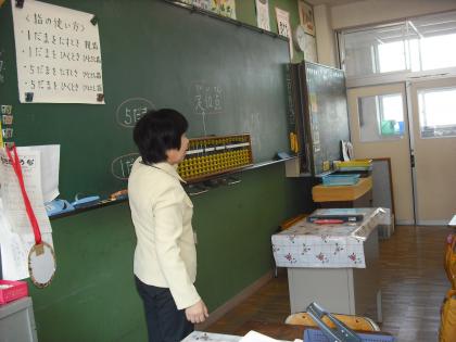 小川ますみ先生がボランティアで3年生を対象に「そろばん教室」を開きました。とても楽しくわかりやすいと評判です。
