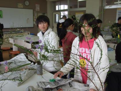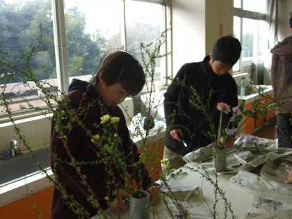 六年生が総合学習で華道を通して日本の文化を学んでいます。