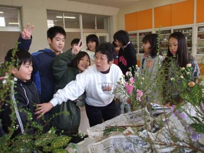 今日も6年生は、華道教室を開きました。杉村先生の指導のもと、日本の伝統文化を学んでいます。