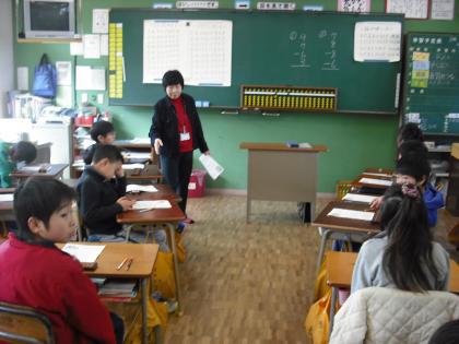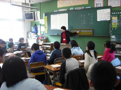 3年生はそろばんの使い方を学習しています。ボランティアの小川先生に感謝。