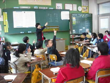 3年生は、そろばん教室を開きました。小川先生の指導のもと、楽しそうに学んでいます。