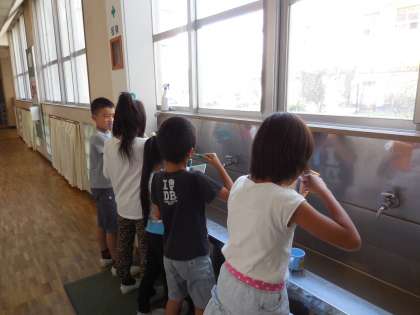 一本一本みがく、歯ブラシを細かく動かすなど、実際にやってみました。
