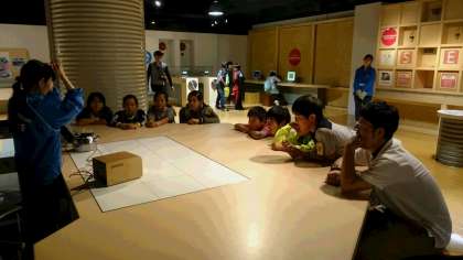 科学技術館に来ています。いろんな科学の体験を楽しんでいます。