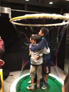 しゃぼん玉の中に入りました!何人入れるかな?