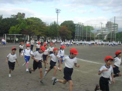12月に行われる持久走大会に向けて練習を頑張っています。自分の目標に向けて最後まであきらめずに走っています。