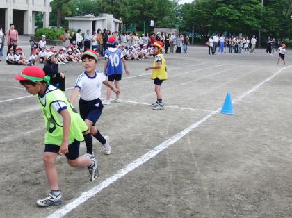 子どもたちは、力いっぱい走り、大声を上げて応援しました。