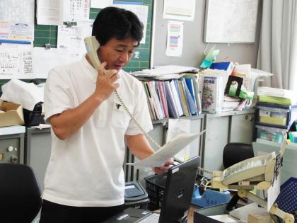 子どもたちは、運動場に素早く集合した後、真剣なまなざしで話を聞いていました。