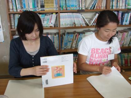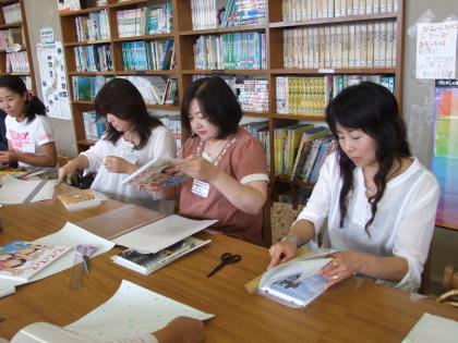 今日、「学校図書館ボランティア」をしてくださる保護者の方々が、司書教諭の増田さんと一緒に、図書館の本にカバーをかけてくださいました。