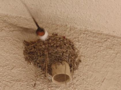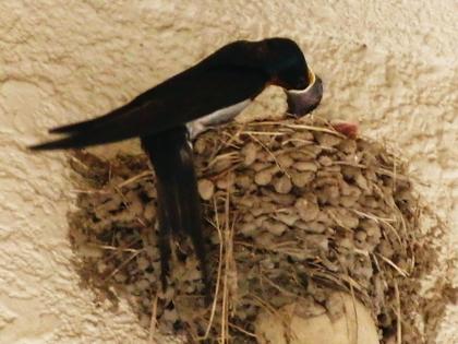 中には、ひながいて、ときおり親鳥がえさをとってきて、与えています。