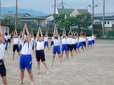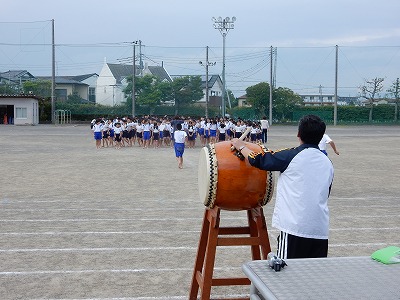 体育館での技の練習が一段落して、運動場での練習が始まりました。