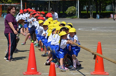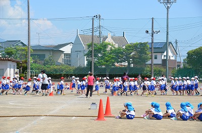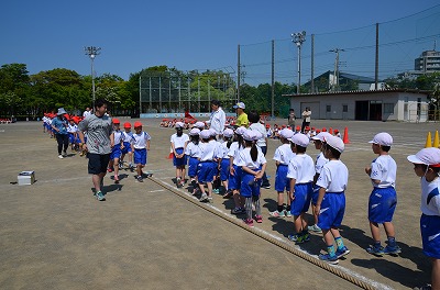 午前・午後、それぞれの最後の種目『綱引き』の練習です。