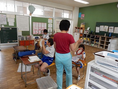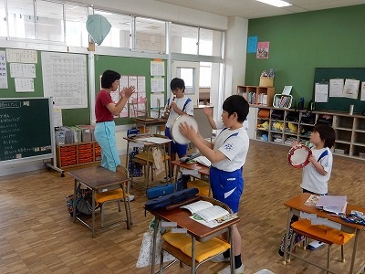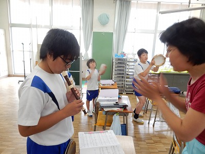6年生のリコーダーに合わせて、下級生が打楽器でリズムをとりました。