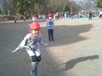 何かと思って見てみると、一人の子の赤白帽子に『テントウムシ』がとまって、帽子の上を動いていました。