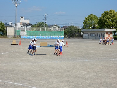 4年生の団体競技は、『箱を運んで みんなを運んで』です。