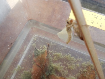 プール掃除の際に採取してきたヤゴ(トンボの幼虫)を水槽に入れて飼育していましたが、ここ数日、羽化が続いているとのことでした。