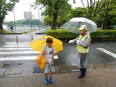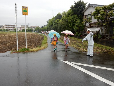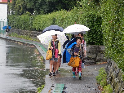 子どもたちが、傘を差して登校してきました。