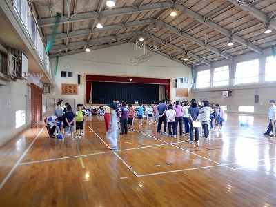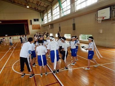 給食後、体育館に集まり、係ごとに準備に取りかかりました。