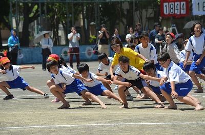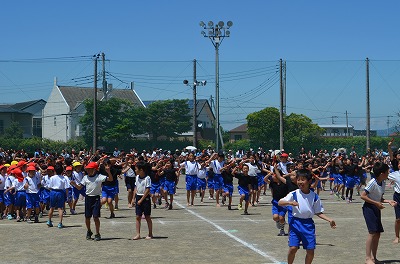 演技終了→退場…と思ったら、全校を巻き込んでの『よっちょれ』大会となりました。