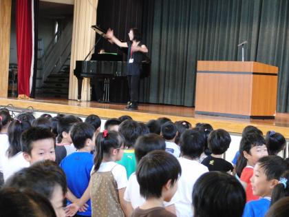 子どもたちは、校長先生の話をしっかりと聞いた後、代表の児童が1学期の反省と夏休みの目標を発表しました。