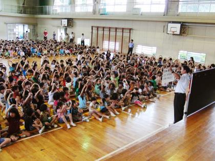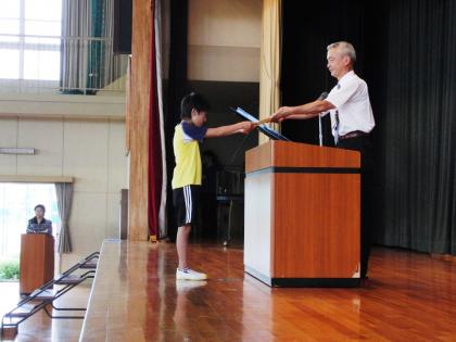 終業式の後、文園の表彰と夏休みの生活についての話がありました。