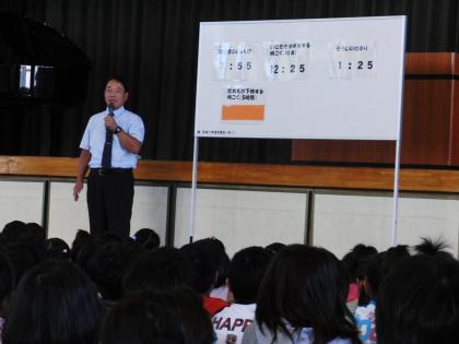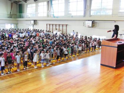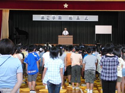 子どもたちは充実した夏休みを過ごしたようで、校長先生の話を聞いたり校歌を歌ったりする子どもたちの表情はとてもいきいきとしていました。