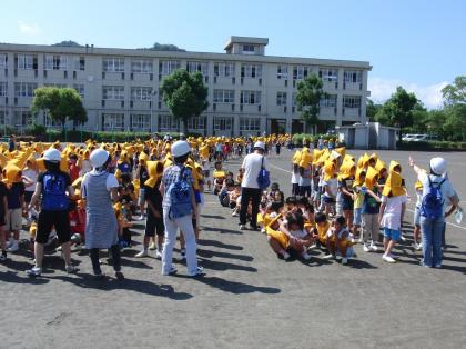 今日の2時間目に、突発地震を想定した避難訓練が行われました。