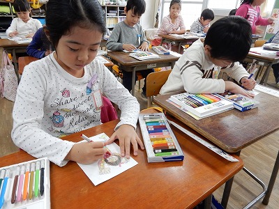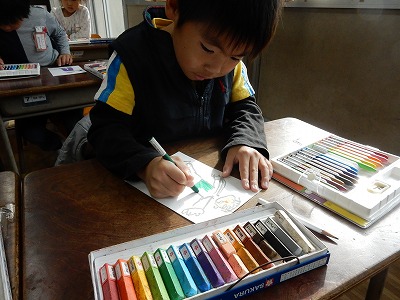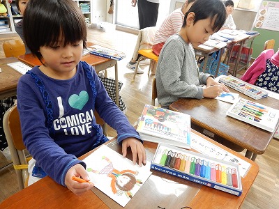 ジャンプしたり、寝ころんだり、またがったりしている自分を一生懸命に描きました。