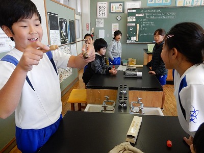 金属も熱せられると体積が大きくなるのかを確かめました。