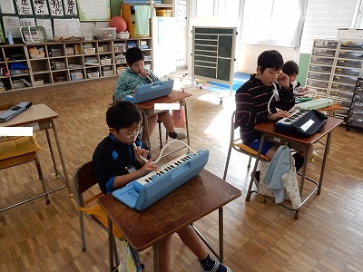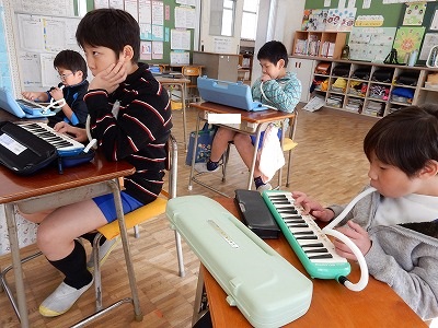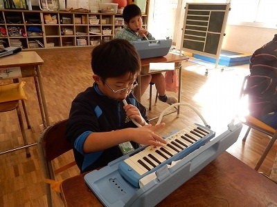 鍵盤ハーモニカで、ミッキーマウスマーチの練習をしました。