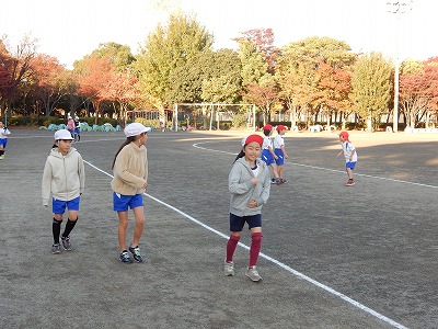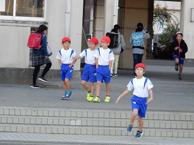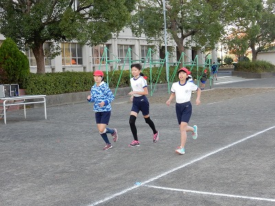 朝7時半過ぎ、体育着に着替えた子どもたちが運動場に出てきて、自主マラソンに取り組んでいました。