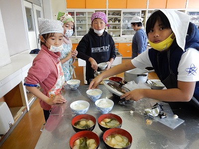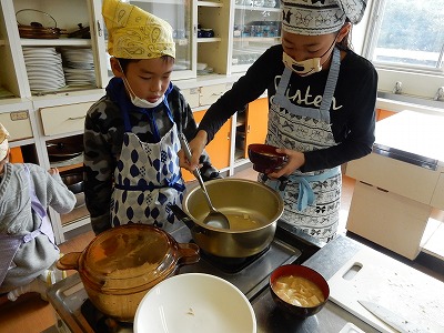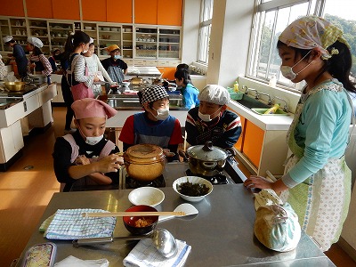 調理実習で、ご飯と味噌汁作りに取り組みました。