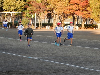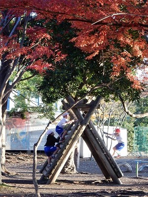 かけ足運動の前に自主的に走る子、友だちが集まるまでアスレチックで遊ぶ子、入り終わって押しくらまんじゅうのような遊びをしている子などの姿が見られました。