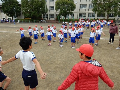 ジンギスカンで体を温めた後、健康観察をし、ラジオ体操第一で体をほぐしました。