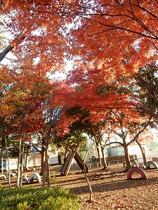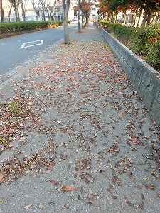 校地西側の道路の街路樹の葉が、一気に落ちました。