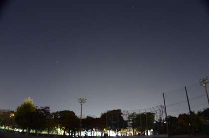 運動場から西に向けて写真を撮ったら、明るい星が3つ、目につきました。