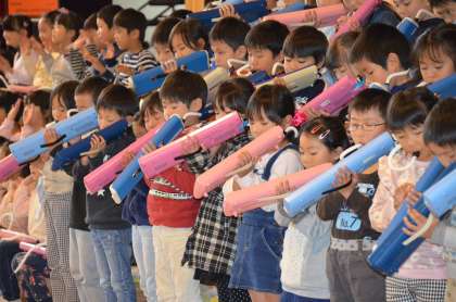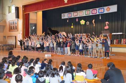 歌や鍵盤ハーモニカを朝や帰りの会、休み時間を塚手練習し、本番を迎えることができました。